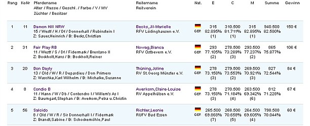 Einzelnoten: Trab 8,5 Galopp 8,5 Schritt 8,0 Rittigkeit Richter 9,0