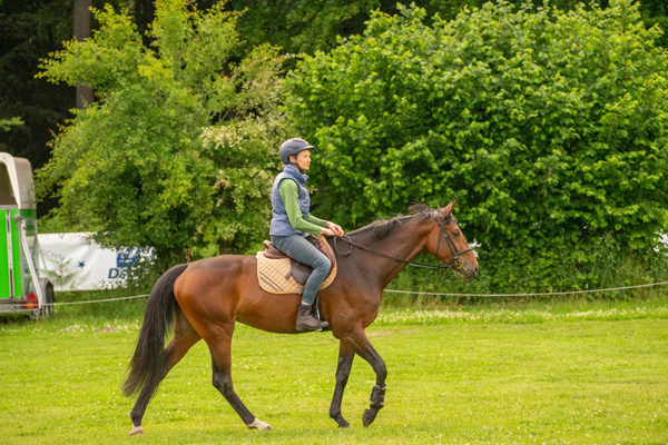 Mittlerweile sind Claudi und Caro Lee souverän in kleinen Geländekursen unterwegs und Claudi ist begeistert, wie unkompliziert und rittig Caro Lee ist. Jederzeit, überall. Ich stehe dann immer mit einem breiten Lächeln daneben und freue mich wie verrückt ob des Lobes von allen Seiten. Ich habe nichts anderes von dem braven Pferdchen erwartet. Doch tatsächlich ist es schon wieder an der Zeit, dass Caro Lee vorübergehend auf den Hof Altepost zurückkehrt, denn der nächste Stutentausch steht an: Die dreijähirge Lilith soll den Sommer über zum Anreiten nach Münster kommen. Das wären dann drei Pferde im Sportstall, und das geht einfach nicht. Auch meine Ressourcen sind nunmal begrenzt. Zwei Pferde in Münster, mehr geht nicht. Ladybird hat sich im letzten Sommer bereits hervorragend mit Diva als Führpferd bewährt und soll nun auch Lilith zur Seite stehen. Sobald Lilith also tragend ist, tauschen wir Caro Lee und Lilith. 3.6.2025 Von all den zahlreichen gemeinsamen Unternehmungen und Geländetrainings mit Caro Lee und Claudi war dieser Sommerabend an der Westfälischen Reit- und Fahrschule der allerschönste. Und das lag nicht nur daran, dass wir dieses letzte Training mit Caro Lee gebührend feiern wollten (tagsdrauf wollten wir die Stuten tauschen, Caro Lee würde den Weidesommer in der Stutenherde verbringen und Lilith käme zum Anreiten nach Münster). Es lag ganz vor allem an der famosen Gesellschaft! Claudis "Damentruppe", wahlweise zum Dressurreiten oder fürs Gelände gerüstet, war glänzend aufgelegt und hatte an alles gedacht - inclusive eines ebenso famosen jungen Mannes, der eine Kamera mit Objektiv dabei hatte, das mich sogleich tief in den Bann zog. Dem jungen Mann wich ich fortan nicht mehr von der Seite. ![]() Abgesehen von den Momenten, da zahlreiche Schlücks'kes und Döschen ihren Weg aus den tiefen Rucksäcken der Damen in unsere Hände fanden. Die Stimmung war grenzenlos. Jedenfalls für all die, die nicht oder nicht mehr im Sattel sassen. Weshalb ich den Platz im Sattel später auch gern zum Schrittreiten mit Claudi tauschte. Partytime und Schwatz für alle, und Claudi hatte sich ihren Anteil daran redlich verdient! ![]() Da hatte auch die brave Stute schon ihre wahrlich famose Qualität als Buschpferd bewiesen: Der erste üerbaute Graben war die grosse Herausforderung des Abends und Caro Lee liess nichts anbrennen: auf Anhieb sprang sie mit einem Riesensatz darüber und auch gleich wieder zurück, damit bloss kein Schreckmoment hängen blieb. Lediglich mit einem schrägen Blick aus der Luft quittierte sie den lauernden Gaben unter dem Baumstamm auf dem Weg zurück - das war alles. Das fantastische junge Pferdchen war unser gemeinsamer grosser Held - wieder einmal! ![]() ... und als ein paar Tage später die Fotos kamen war mir klar, dass ich diesen Abend auch ganz sicher nicht vergessen werde. Das satte Grün, die herrlichen Farben in der schrägen Abendsonne und auf jedem Foto wahlweise ein strahlender Reiter, ein gut aufgelegtes Pferd, und auch beide gemeinsam so. Ein herrlicher Abend und ein würdiger Abschluss für Caro Lees erste Sattel-Saison mit Claudi! ![]() Tatsächlich entstand so das erste Mal auch ein Foto von Caro Lee mit mir im Sattel - ganz und gar unspektakulär, aber einfach schön. Ich habe mich richtig darüber gefreut und den jungen Mann mit seinem famosen Objektiv gleich noch etwas mehr ins Herz geschlossen. |