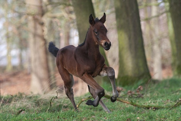 Carly hat das lang erwartete Stutfohlen geboren!![]() Früh am Montagmorgen erreichte mich der Anruf meiner Stutenfee: "Wunschfohlen gelandet! Ein Stutfohlen!" ![]() In der Mittagspause machte ich mich auf und stand beseelt vor dem schlichten braunen Pferdekind und meiner Carly, die wohlbehalten und zufrieden ihr Neugeborenes behütete. Vertrauensvoll rieb Carly ihre Nase an mir und wieder ging mir das Herz auf angesichts dieser liebenswerten sanften Stute. Als ich mich zu den beiden ins Stroh setzte rappelte die kleine Tochter sich zügig auf die wackeligen Beine. Ein neugieriger Blick in meine Richtung, das erste vorsichtige Schnobern an der neuen, fremden Gestalt. Das war es, was mich Ticken macht! Die Mutter hatte ich als Neugeborenes schon genau so erlebt, und nun also ihre Tochter. ![]() Es galt, die Sonne zu nutzen, die sich gerade ihren Weg durch die Wolken brach. Stutenfee Ingrid nahm Carly am Kopf, ich schob das Fohlen vorweg - da stand sie nun auf der Stallgasse mit ihren wackeligen Beinchen und ich war begeistert! Durchtrittig auf allen vier Füssen, sowas kannte ich nur von meinen Fidermarks, die ihre Fohlen meist ab Werk genau so lieferten. Zügig machten wir uns auf den Weg Richtung Stalltür und schoben die kleine Tochter auf den Hof, die besorgte brave Carly dicht an unserer Seite. Ein paar Minuten nur für den ersten Hofgang, das überdimsenionierte und noch reichlich wackelige Fahrgestell sollte sich festigen. Caro Lee tralupfte munter in alle Richtungen um und hinter Carly daher, ich war begeistert! Das versprach ein bewegungsfreudiges und aufgewecktes Fohlenkind zu werden! ![]() Der zweite Ausgang am Montagabend blieb uns ob der heftigen Windböen versagt. Das Pferdchen sollte nicht davon geweht werden oder sich erkälten. Statt dessen verbrachte ich eine Menge Zeit bei meinem Mutter-Kind Duo in der Box. Dankbar liess Carly sich die rubbelnde Bürste gefallen und genoss es sichtlich so bearbeitet zu werden. Neugierig beäugte die kleine Tochter unser Tun und schob mir das braune Näschen immer mal wieder sacht entgegen. Zum Fohlenrubbeln war es noch ein bisschen früh. Unsere Zeit würde kommen! ![]() Dienstagmittag und der erste Gang auf die Heuwiese, Stutenfee Ingrid war mit von der Party, aber die helfende Hand erwies sich alsbald als überflüssig. Caro Lee hatte nicht nur den Durchblick, sie war auch von Anfang an auf "nach vorn!" und neue Welt erobern ausgerichtet und galoppierte auf Anhieb um Carly herum. Ich war verblüfft. Beim ersten Ausgang auf die grosse Wiese kleben die Fohlen meist an Muttern und ziehen nicht vornweg. Schon gar nicht testen sie bereits das wackelige Fahrgestell so nachdrücklich an und aus! Caro Lee dachte gar nicht daran, sich schützend im Wind an Carly zu heften. Statt dessen hupfte sie um uns herum und übte sich in barrierefreiem Galopp! Dafür hatte die Heuwiese reichlich zu bieten. Die brave Carly trugs mit Fassung und frass sogar mässig entspannt von dem frischen Grün. ![]() Mit einem beseelten Lächeln brachte ich meine beiden nach einer ausgedehnten Viertelstunde zurück in den Stall. Aufgeweckt fädelte Caro Lee sich sogleich passend an der Stalltür ein und trabte zügig hinterher bis in die Box - was für ein helles Fohlen! Ein paar Stunden später nach Feierabend war klar, den nächsten Gang auf die Wiese schaffen wir auch allein! So war es. Stutenfee Ingrid war zugegen, aber Hilfe war überflüssig. Den Weg aus der Box, auf den Hof und über die Strasse auf die Wiese hatte die kleine Tochter bereits auf dem Schirm und galoppierte keck und forsch los! Ich war beeindruckt! Ich dachte an die Biene, Fannies Tochter drei Wochen zuvor, die erst am dritten Tag ein vergleichbar eigenständiges Verhalten entwickelte, da war sie schon das fünfte oder sechste Mal auf der Heuwiese gewesen. ![]() Nun gab es kein Halten mehr und ich marschierte mit Carly zügig bis in den Wald. Vollkommen unbeeindruckt hüpfte Caro Lee nebenher und machte sich gleich auf eigenständige Runden im Galopp um die Bäume. Die Bäume! Üblicherweise nähern die Fohlen sich beim ersten Mal zaghaft und finden heraus, dass man durch Bäume nicht hindurchmarschieren kann. Gleiches gilt für Gehölz und alles andere, was der Wald zu bieten hat. Nicht so Carlys Tochter. Die spurtete auf dem noch immer wackeligen Fahrgestell los und drehte unerschrocken ihre Runden um die Bäume. Was für ein Fohlen! Der Sturm hatte reichlich Astbruch am Boden beschert, auch das hatte sie im Blick und ich konnte nur staunen. ![]() Es war noch immer kalt und windig, doch dieses Fohlen verschwendete keine Zeit mit Auskühlen an Mutters Seite. Sie war einfach ständig unterwegs, vorzugsweise im Galopp, weil die wackeligen Beine Traben ohnehin noch nicht wirklich hergaben. Wieder einmal war ich unendlich dankbar für dieses grossartige Gelände und konnte gar nicht genug davon bekommen, Carlys Tochter bei ihren ersten grossen Sprüngen und Kreisen zu beobachten. Weshalb dieser erste Waldspaziergang sich vermutlich deutlich länger erstreckte, als Stutenfee Ingrid es ansonsten erlaubt hätte. Zum kalt werden hatte Caro Lee einfach keine Zeit! ![]() Mit einem Strahlen im Gesicht brachte ich meine beiden zurück in den Stall und die Stutenfee konstatierte meinen begeisterten Bericht grinsend kurz und treffend: "Blüterfohlen eben!" Da hatte sie wohl Recht. Besagtes Blüterfohlen lag dann auch ruckzuck im Stroh und war tief und fest eingeschlafen. Die ausgiebigen Galopptouren forderten dann doch ihren Tribut. Lächelnd stand ich vor der Box. So schön! 21.2.2020 Caro Lee im Alter von vier Tagen Mein lieber Kollege Ludwig wartete schon ganz ungeduldig auf die nächste gemeinsame Mittagspause mit den Fohlenstuten im Wald. Was fehlte, war die Sonne. Heute sollte es soweit sein und Ludwig machte gleich zwei Stuten nebst Fohlen und mich sehr glücklich, denn nun hatte ich endlich die Gelegenheit, auch Caro Lee einmal mit der Kamera begleiten zu können. Carlys Tochter ist einfach herzerfrisc