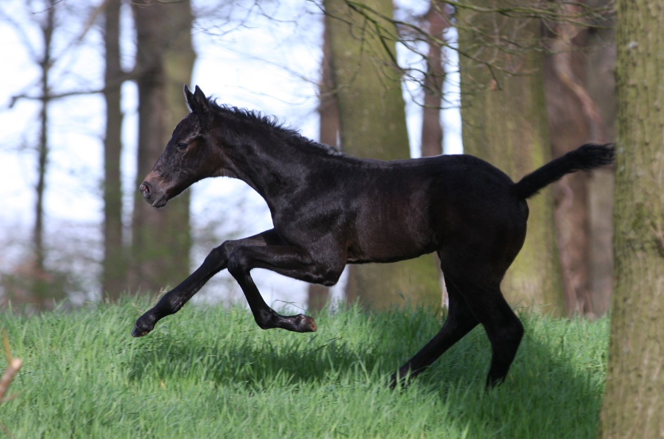 ![]() Exakt eine Woche vor dem errechneten Termin bringt Caro Lee ihr erstes Fohlen zur Welt. Während ich noch gar nicht darauf eingestellt war und nicht nur wetterbedingt der Meinung war, das Brot hätte gern noch ein Weilchen im Ofen bleiben dürfen, war Stutenfee Ingrid rundum zufrieden: "Neee... die war jetzt einfach so weit und das hat prima gepasst!" So kam es also, dass ich am späten Sonntagabend verschlafen und nicht weniger verwundert eine WhatsApp meiner Stutenfee erhielt, da leckte eine braune Stute ein neugeborenes schwarzes Fohlen trocken ... Nett. Doch wieso schickt Stutenfee Ingrid mir Fohlenvideos mitten in der Nacht? Erst pfennigweise fiel dann der Groschen ... "Meins?????" ... Dazu passte dann auch der Text zum Video mit dem kryptischen Vermerk "Farbe könnte passen" ...Was Carly mit all ihren Schimmel-Anpaarungen stets hartnäckig ignorierte und braune Fohlen gebar, das schafft Caro Lee im ersten Wurf: dieses Fohlen "wiSchiwe"!